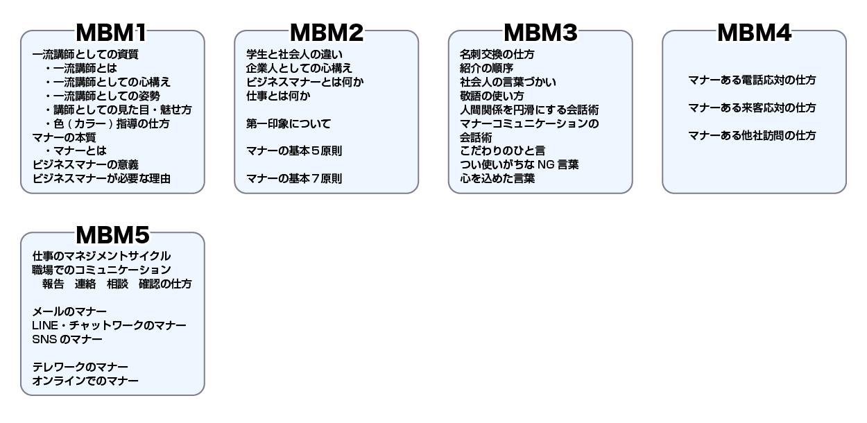 MBM(真心ビジネスマナー)講義内容